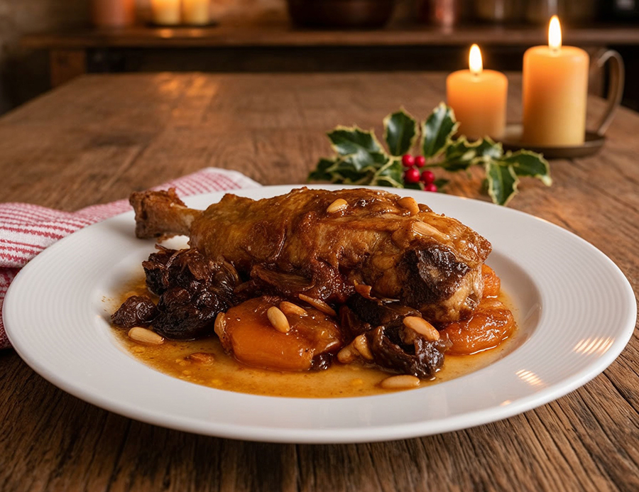 ¡Perfecto para los meses fríos y para celebrar estas fiestas! Esta deliciosa receta combina sabores salados y dulces, y al cocinar el pollo a baja temperatura, logramos una textura y un sabor excepcionales, además de prolongar la vida útil del producto.